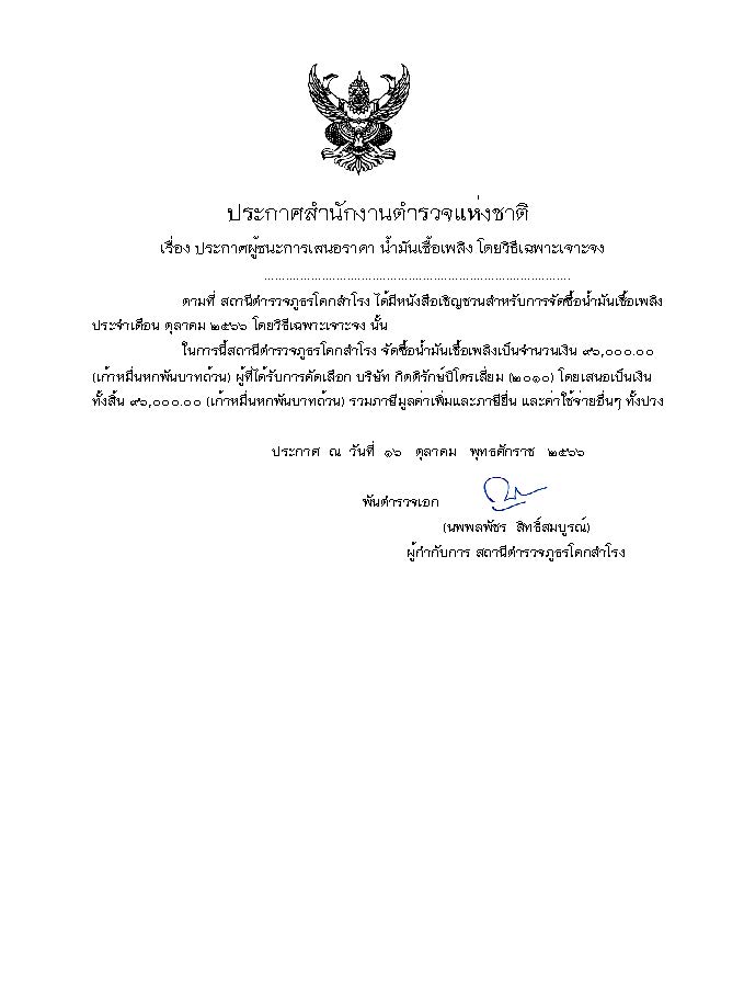 ประกาศจัดซื้อจัดจ้างประจำเดือน ตุลาคม 2566