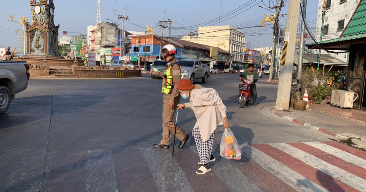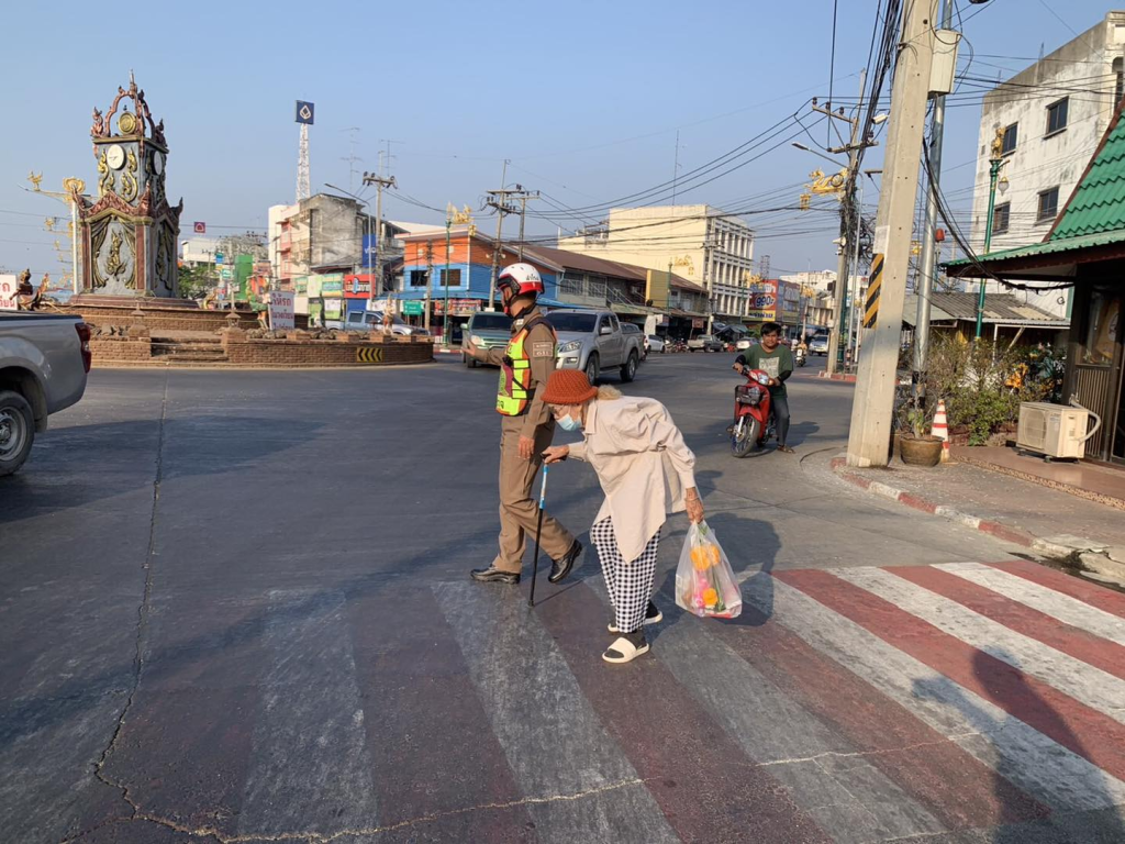 อผู้สูงอายุข้ามถนน บริเวณวงเวียนโคกสำโรง