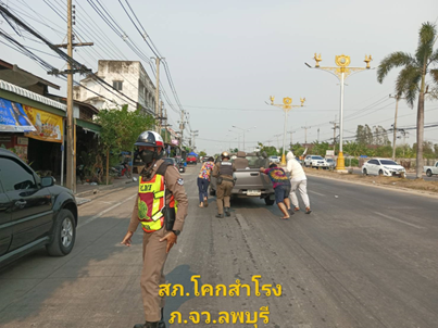เมื่อวันที่ 14 เม.ย.66 เวลา 11.30 น. เจ้าหน้าที่ตำรวจจราจร สภ.โคกสำโรง ขณะปฏิบัติหน้าที่จราจร ได้มีรถยนต์กระบะยี่ห้อ อีซูซุ สีเทา เครื่องยนต์ดับสตาร์ทไม่ติด บริเวณจุดกลับรถ ถนนสุระนารายณ์ ในเขตเทศบาลตำบลโคกสำโรง จึงได้ประสานสายตรวจรถจักรยานยนต์ที่ปฏิบัติหน้าที่บริเวณใกล้เคียงจุดเกิดเหตุ มาช่วยกันทำการเข็ญรถเพื่อสตาร์ท รถสามารถสตาร์ทติดและเดินทางต่อไปได้